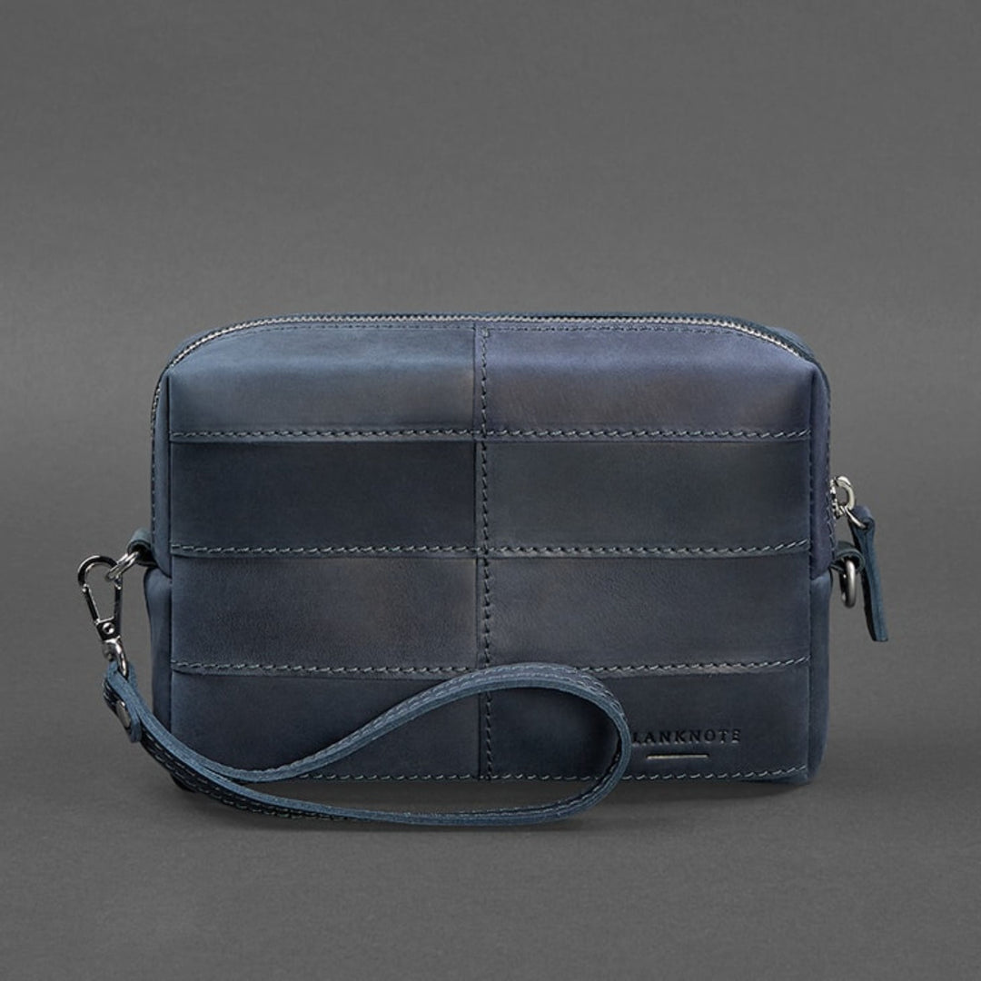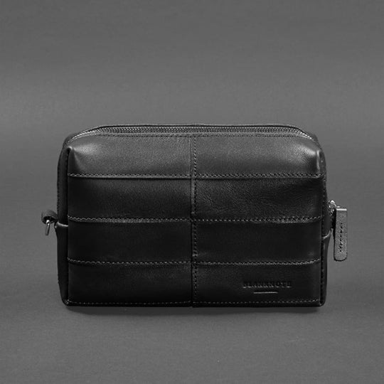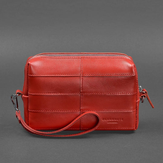 Inside the necessaire, there is one spacious compartment with one divider/holder for small items. The accessory can be worn on the wrist, and a removable leather loop is provided for this purpose. The convenient rectangular shape will allow the accessory to be compactly placed in a bag or suitcase.