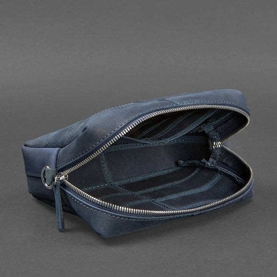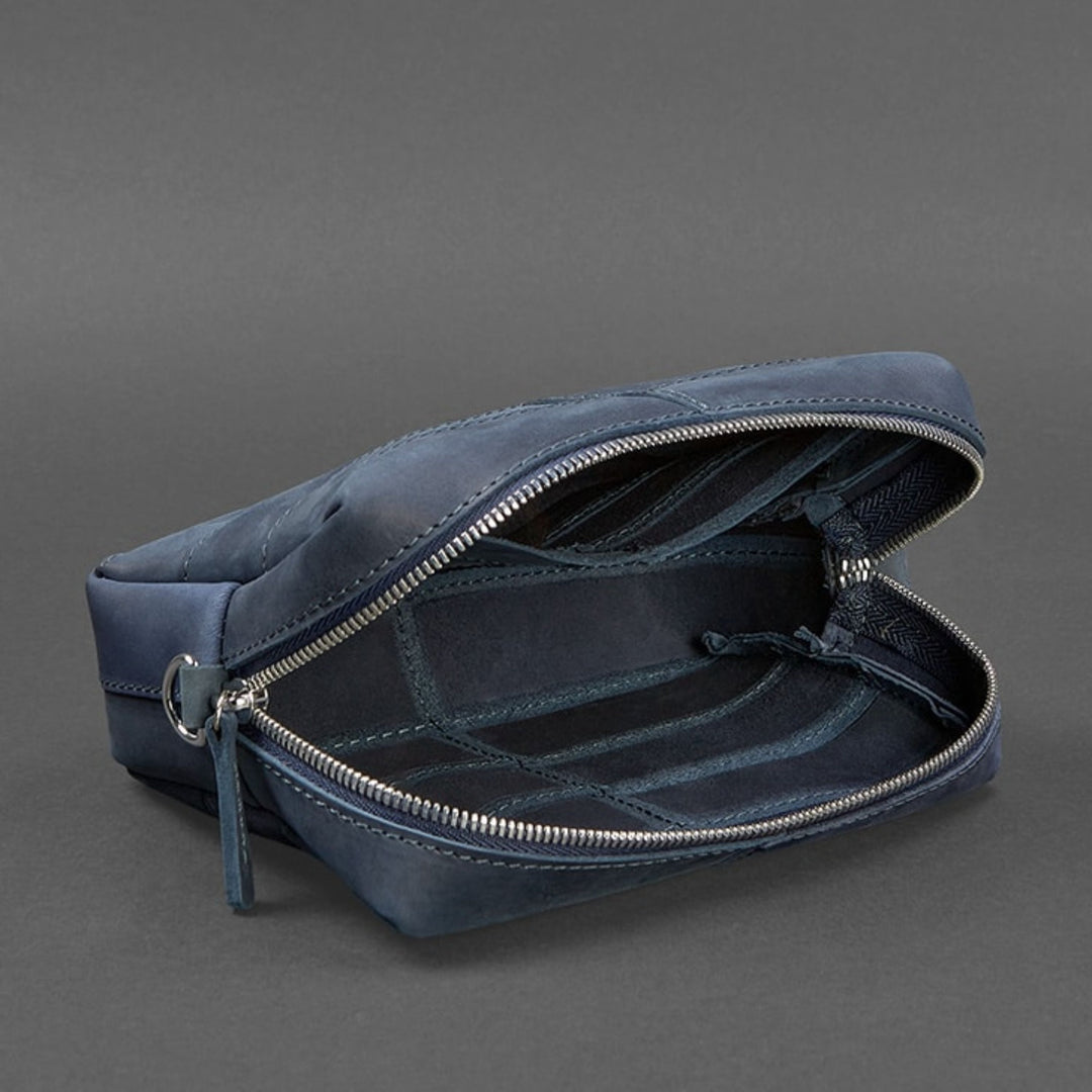 The cosmetic bag is made of natural Crazy Horse leather in a beautiful emerald color. This is a high-quality leather with a vintage matte surface.