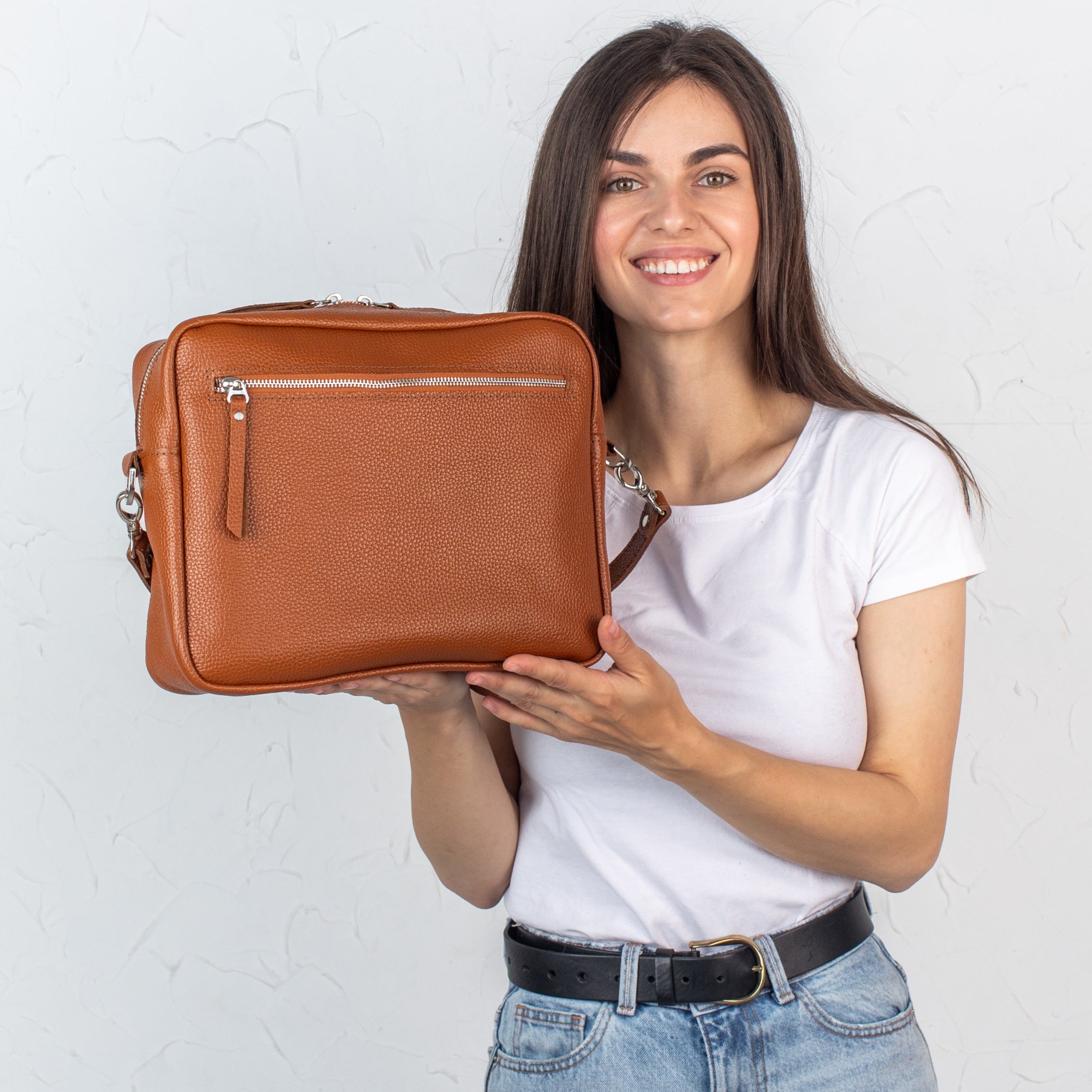 This is a leather crossbody bag with a classic design, crafted from high-quality genuine leather.