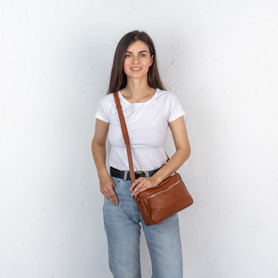Brown Pebbled Leather Crossbody Bag For Women