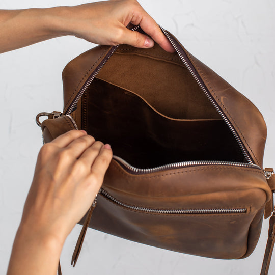 Our leather is incredibly easy to care for. With time and use, the natural oils in the leather will rise to the surface, developing a beautiful patina and smoothing any scuffs or scratches that may have accumulated. Learn more about caring for your new leather product.