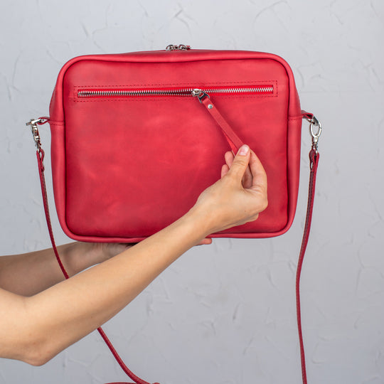 This is a leather crossbody bag with a classic design, crafted from high-quality genuine leather.