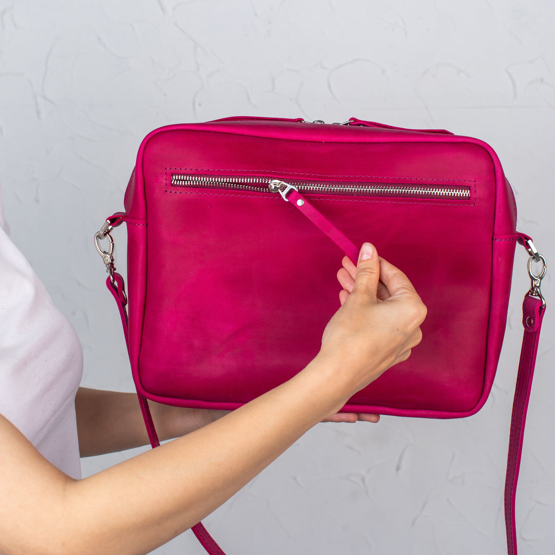 This is a leather crossbody bag with a classic design, crafted from high-quality genuine leather.