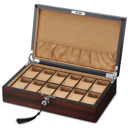 Luxuriöser Uhren- und Schmuck-Organizer aus Holz mit 12 Fächern und Schloss