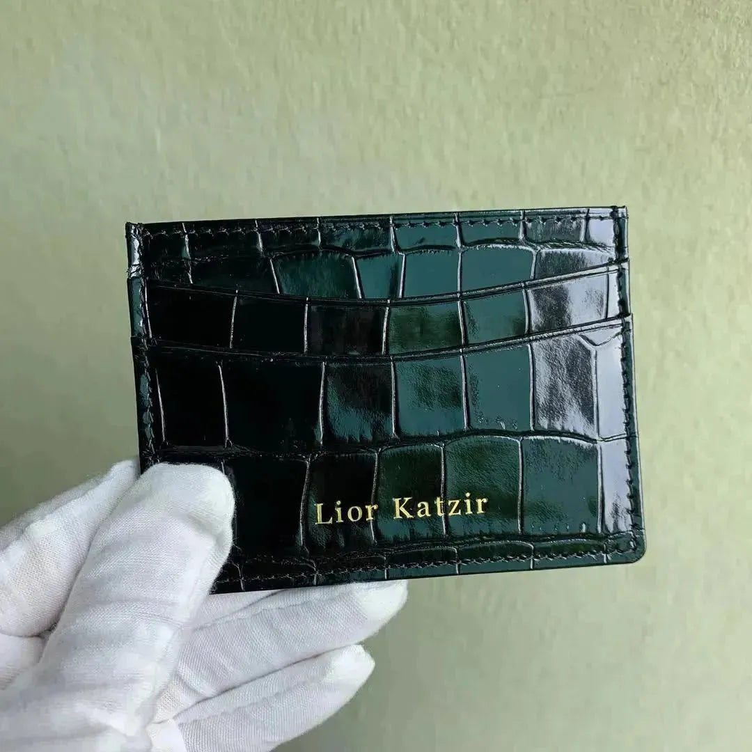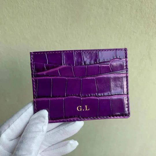 Elevate your style with this luxury leather card holder, crafted from premium Italian cow leather with a sophisticated crocodile pattern. The rich dark magenta color adds a touch of elegance.