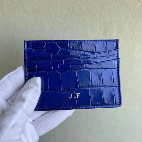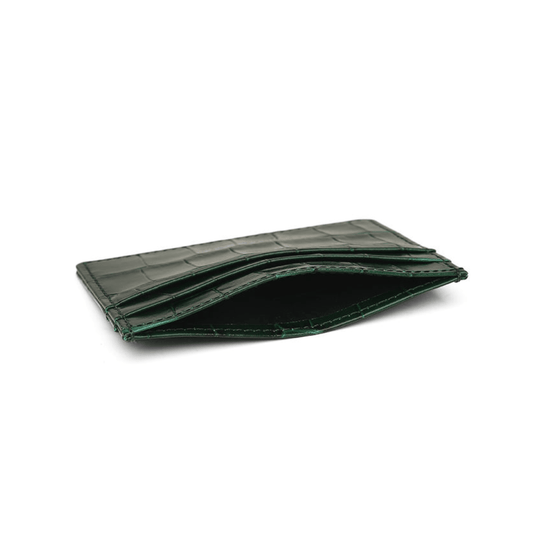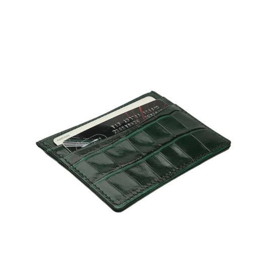 Elevate your style with this embossed crocodile card holder, crafted from premium Italian cow leather with a sophisticated crocodile pattern. The vibrant green color adds a touch of elegance.