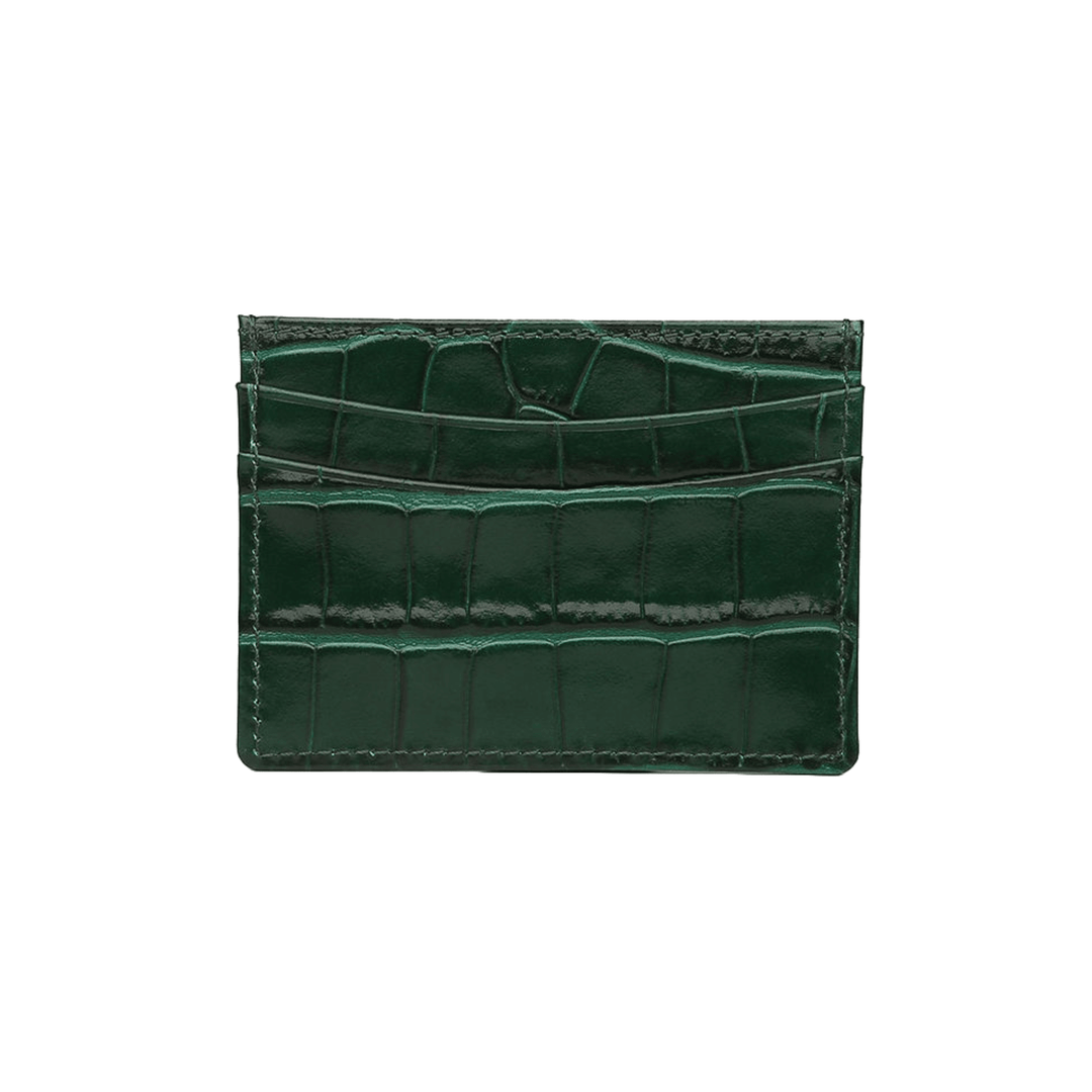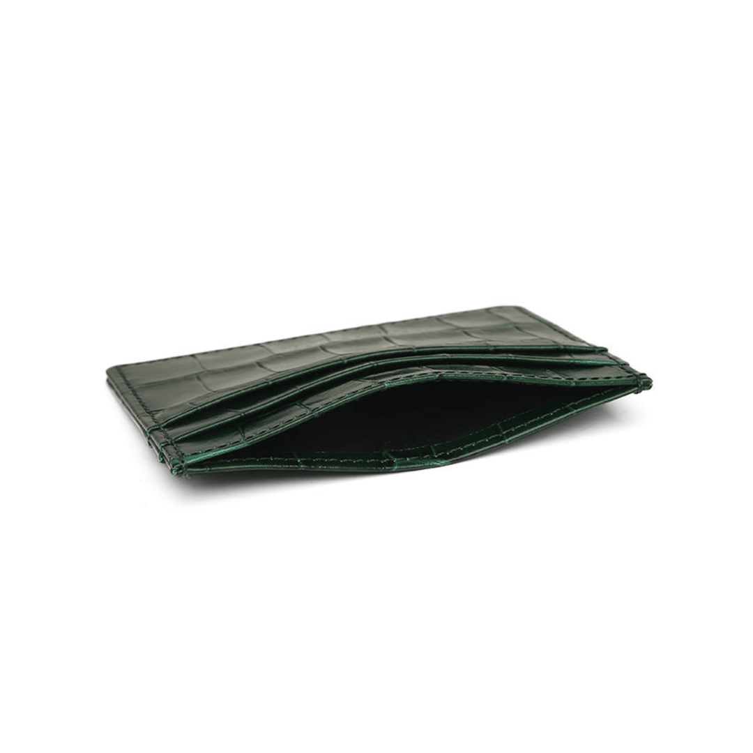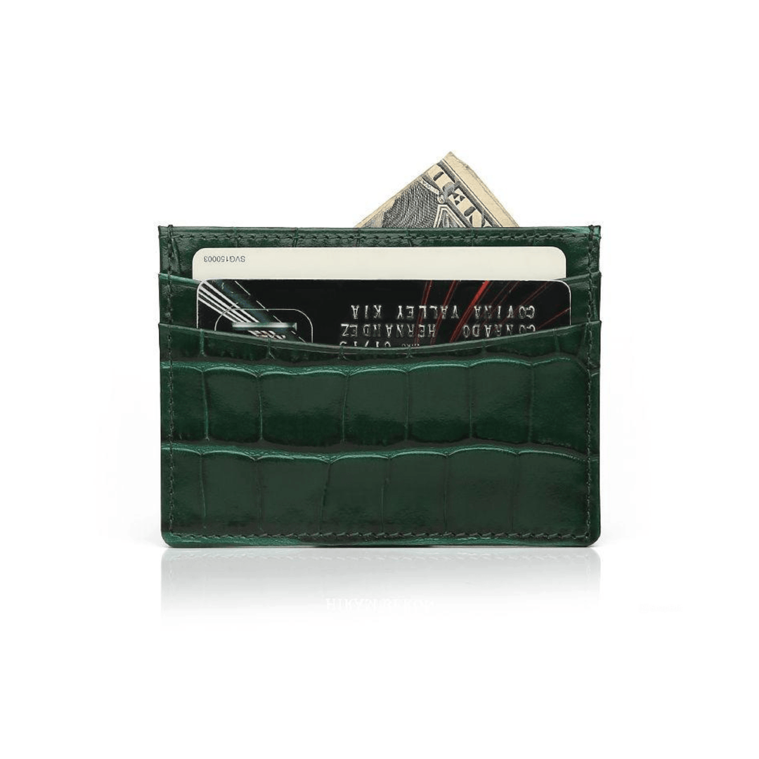 Green Embossed Crocodile Card Holder Italian Leather - Leather Purse Backpack
