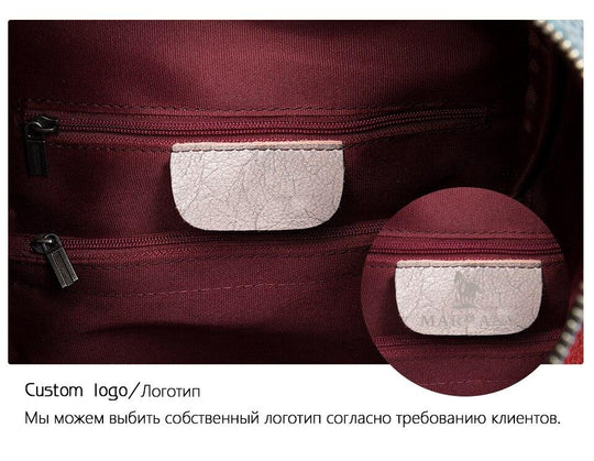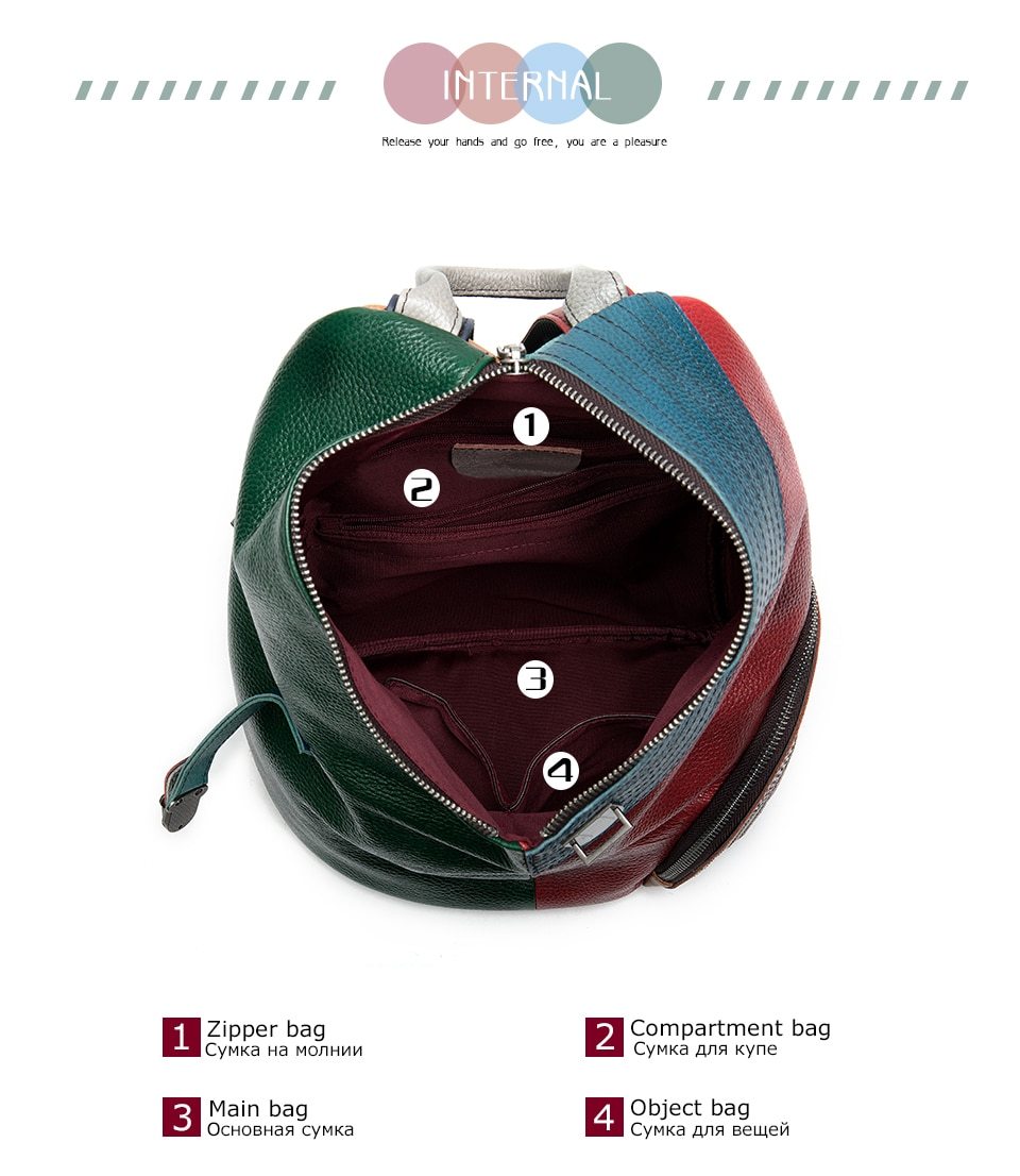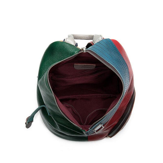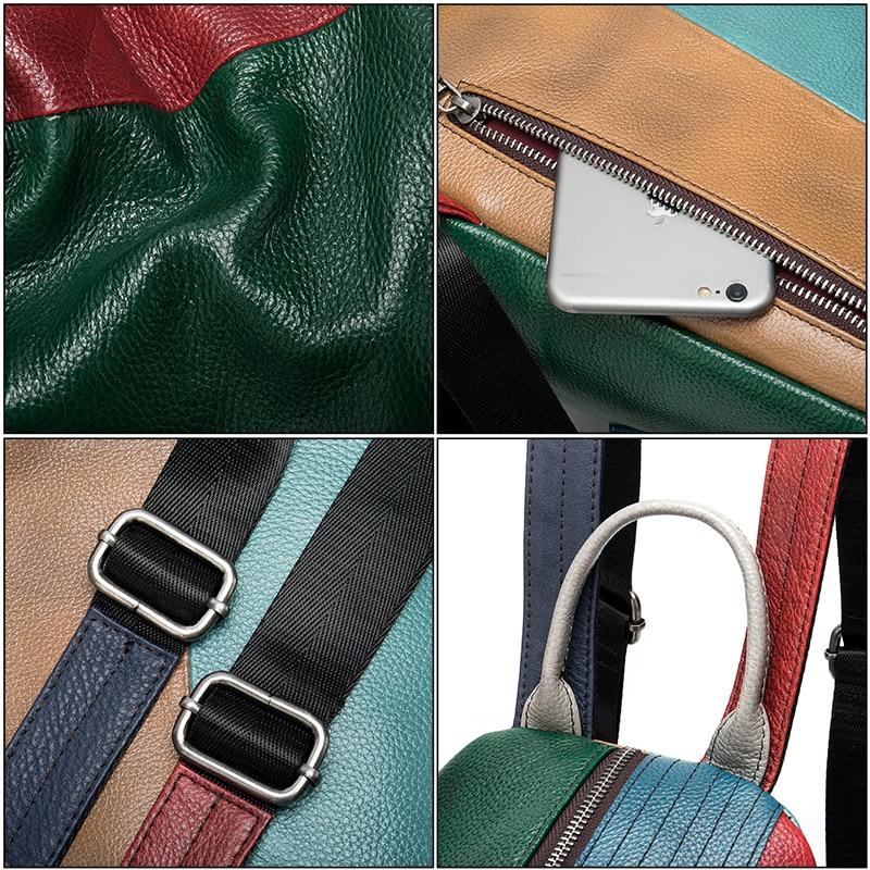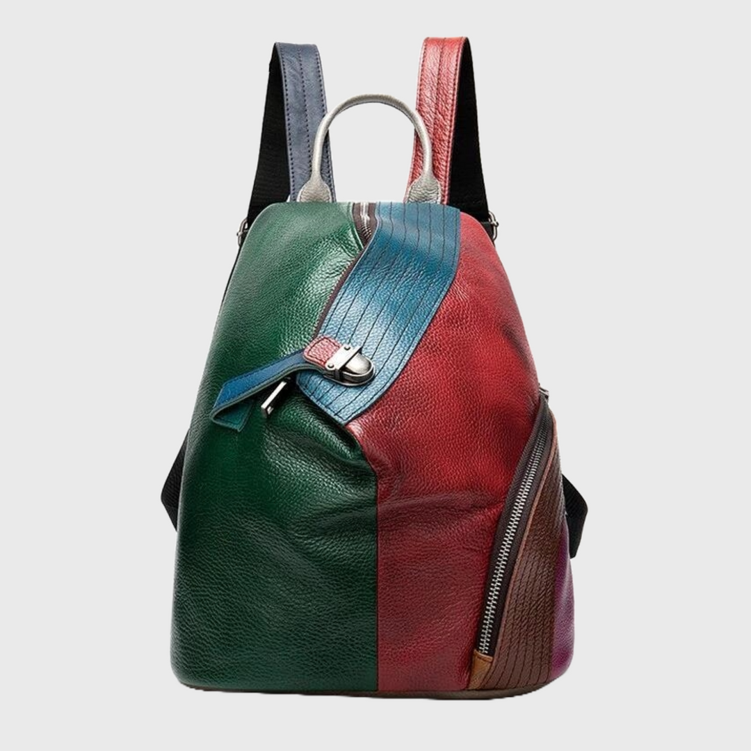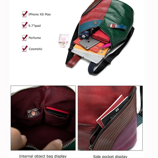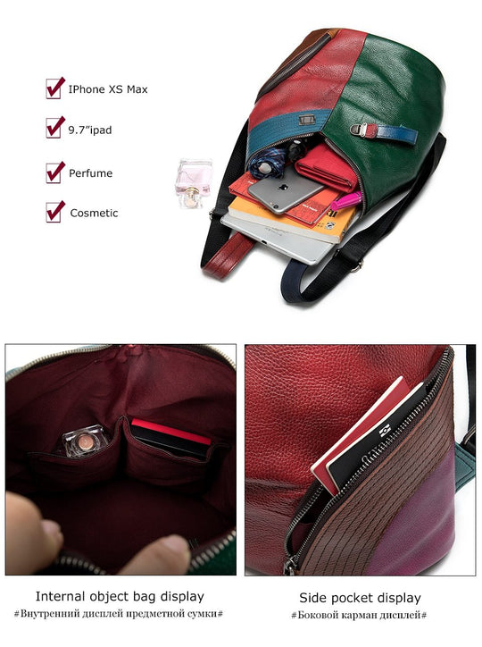 Trendiges Patchwork-Design auf echtem Lederrucksack