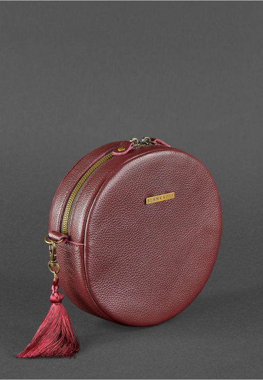 Einzigartige runde Ledertasche für Damen mit dekorativer Quaste