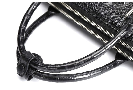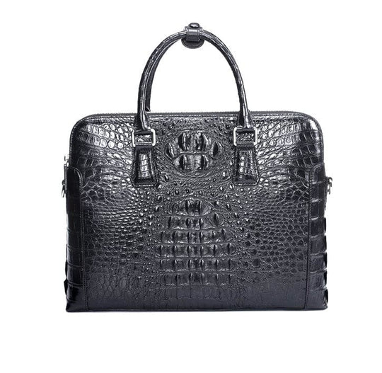 This Handcrafted Luxury Genuine Crocodile Leather Men's Briefcase is the perfect way to make a statement while staying organized. Crafted from genuine crocodile leather, this briefcase features a luxurious, high-gloss finish and is designed with several compartments to keep you organized. The spacious main compartment is ideal for documents, books, and other essentials, while the two front pockets are great for quick access items. The adjustable, detachable shoulder strap allows for comfortable carrying and the gold-tone hardware adds an extra touch of sophistication and style. Whether you're headed to the office, to a meeting, or on a business trip, this briefcase is sure to turn heads.
