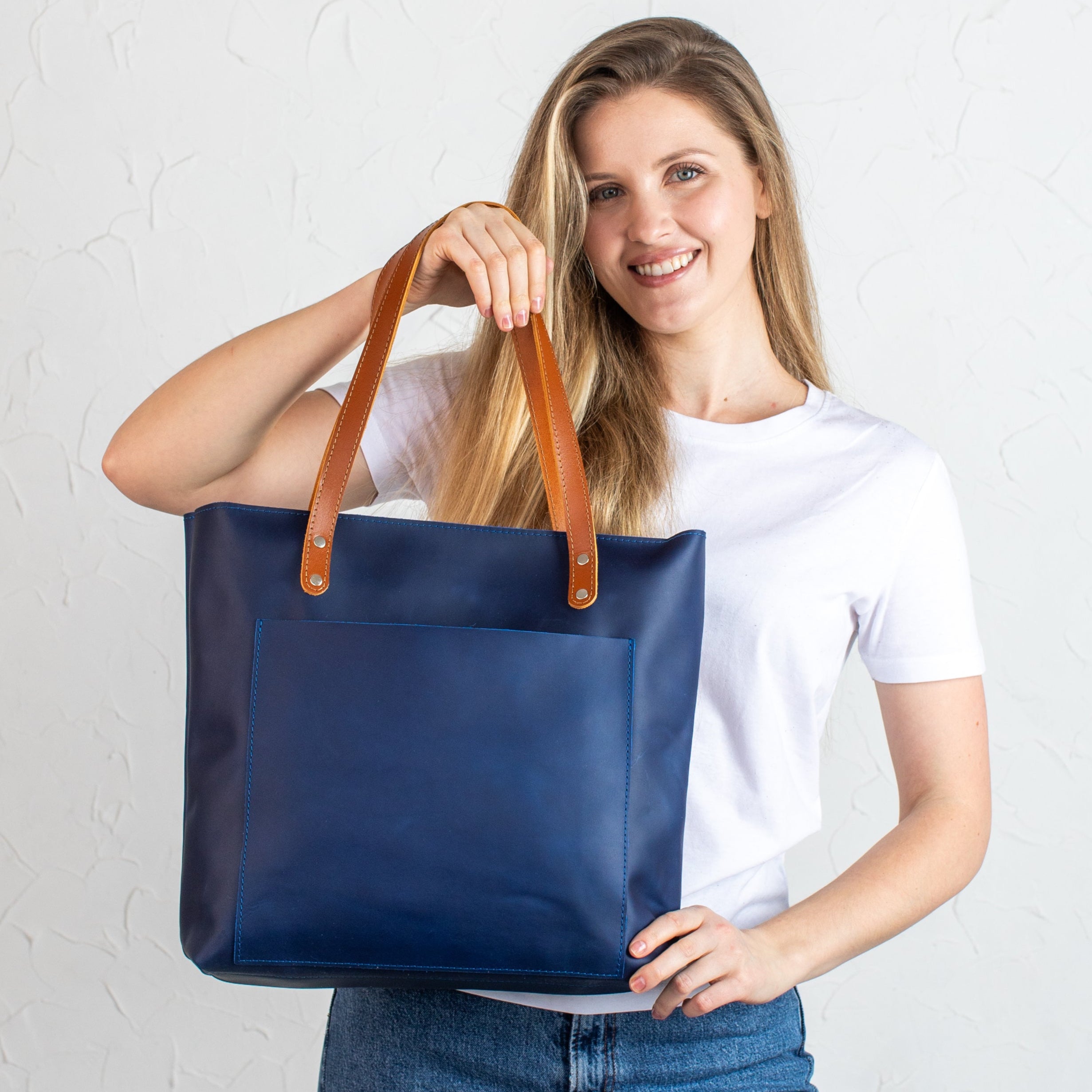 This handmade women tote bag is produced of cowhide pebbled leather. It has one pocket inside. The bag has a high-quality zipper that secures your belongings. It holds the shape perfectly and you may be confident that your personal things like cell phone, tablet, lap-top are safe. This bag is simple, reliable, and durable. Its universal look allows to use the tote bag for various purposes. One may take the bag to the work, shopping, meeting, or walk and feel comfortable with it at any conditions.