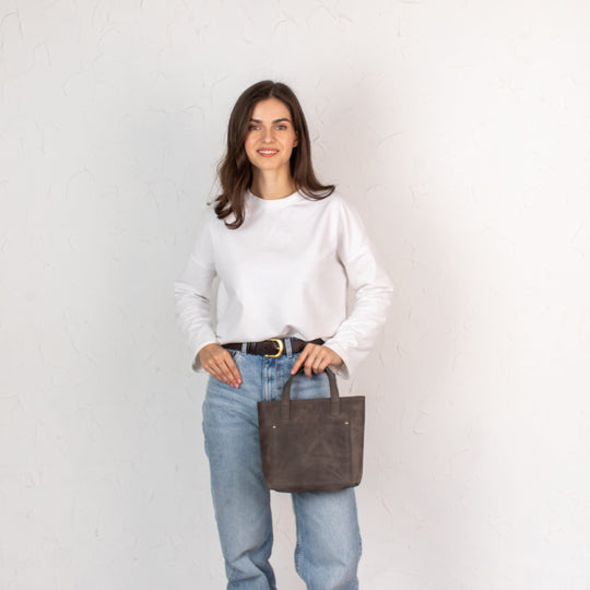 This handmade women mini tote bag is produced by cowhide leather. It has one pocket inside. The bag has a high-quality zipper that secures your belongings. It holds the shape perfectly and you may be confident that your things like cell phone, tablet, etc. This bag is simple, reliable, and durable. Its universal look allows using the tote bag for various purposes. One may take the bag to the work, shopping, meeting, or walk and feel comfortable with it in any condition.