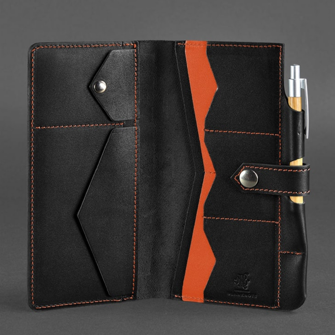 This document holder is a handy size and will hold boarding passes (or train tickets), passports, money and a host of other useful things that should always be at hand when traveling. The holder is made entirely by hand from a piece of very dense (0.08 inches) genuine leather. There is also a separate pocket for a pen or pencil)