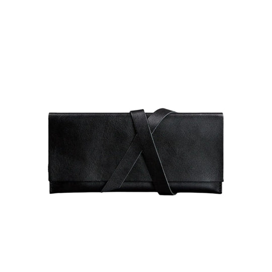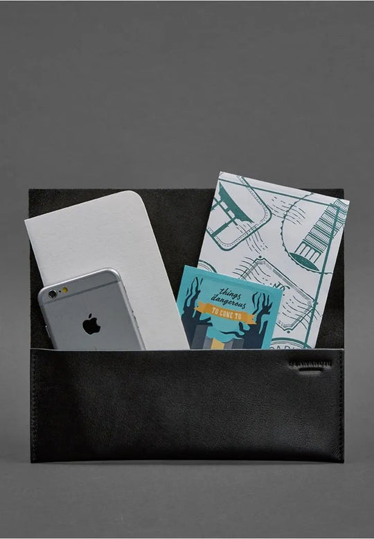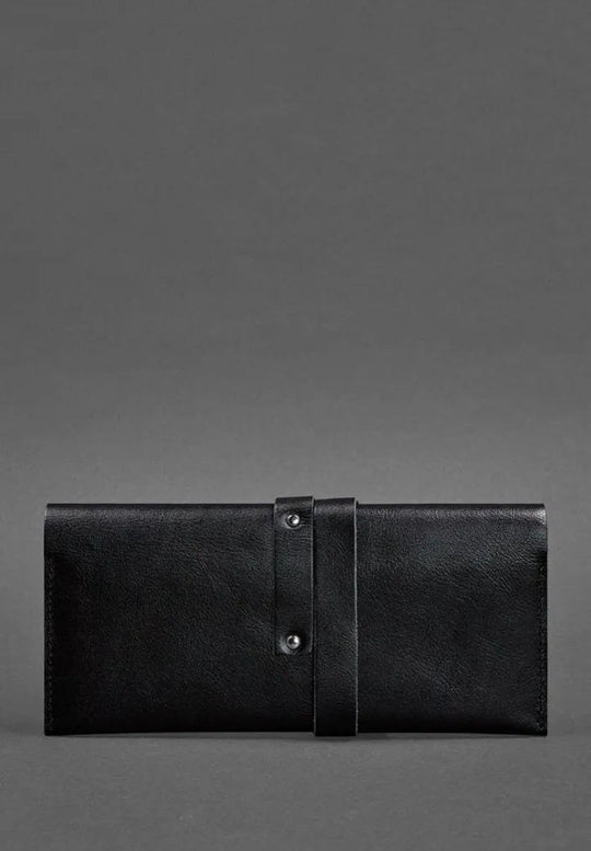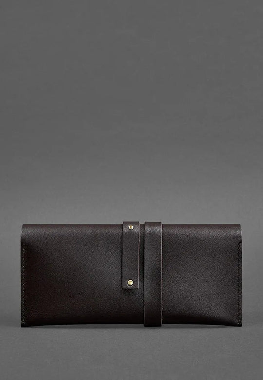 This handcrafted leather holder is designed to fit boarding passes, passports, money, and other essential travel items within easy reach. Made from a single piece of thick (2 mm) genuine leather, it closes with a leather strap secured by two eyelets, which also serve as a pen holder.