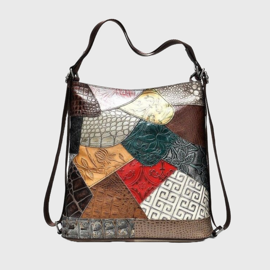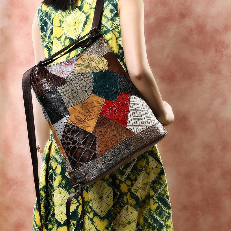 Sac bandoulière et sac à dos convertible en cuir véritable à motifs floraux multicolores de style bohème