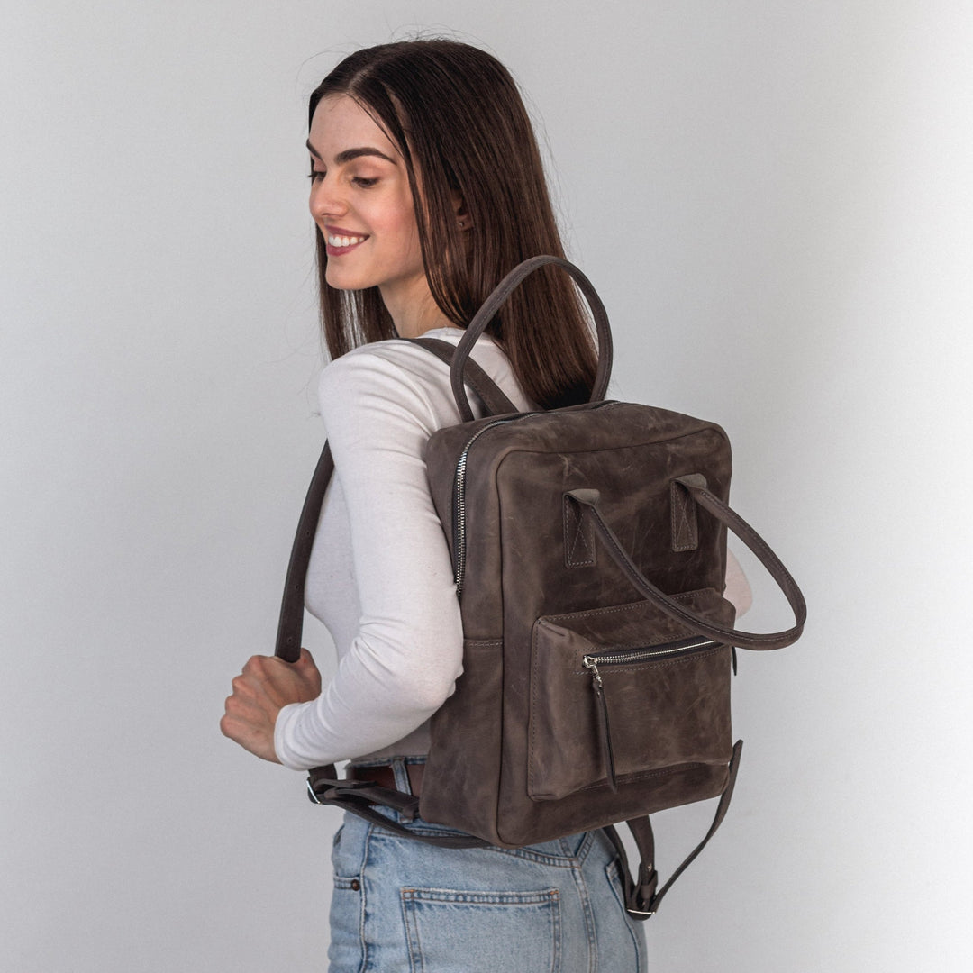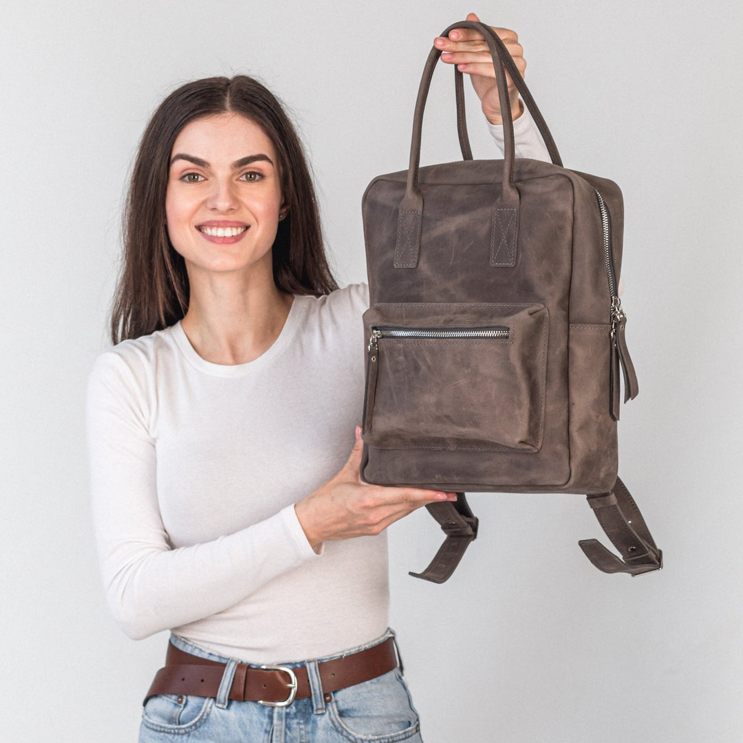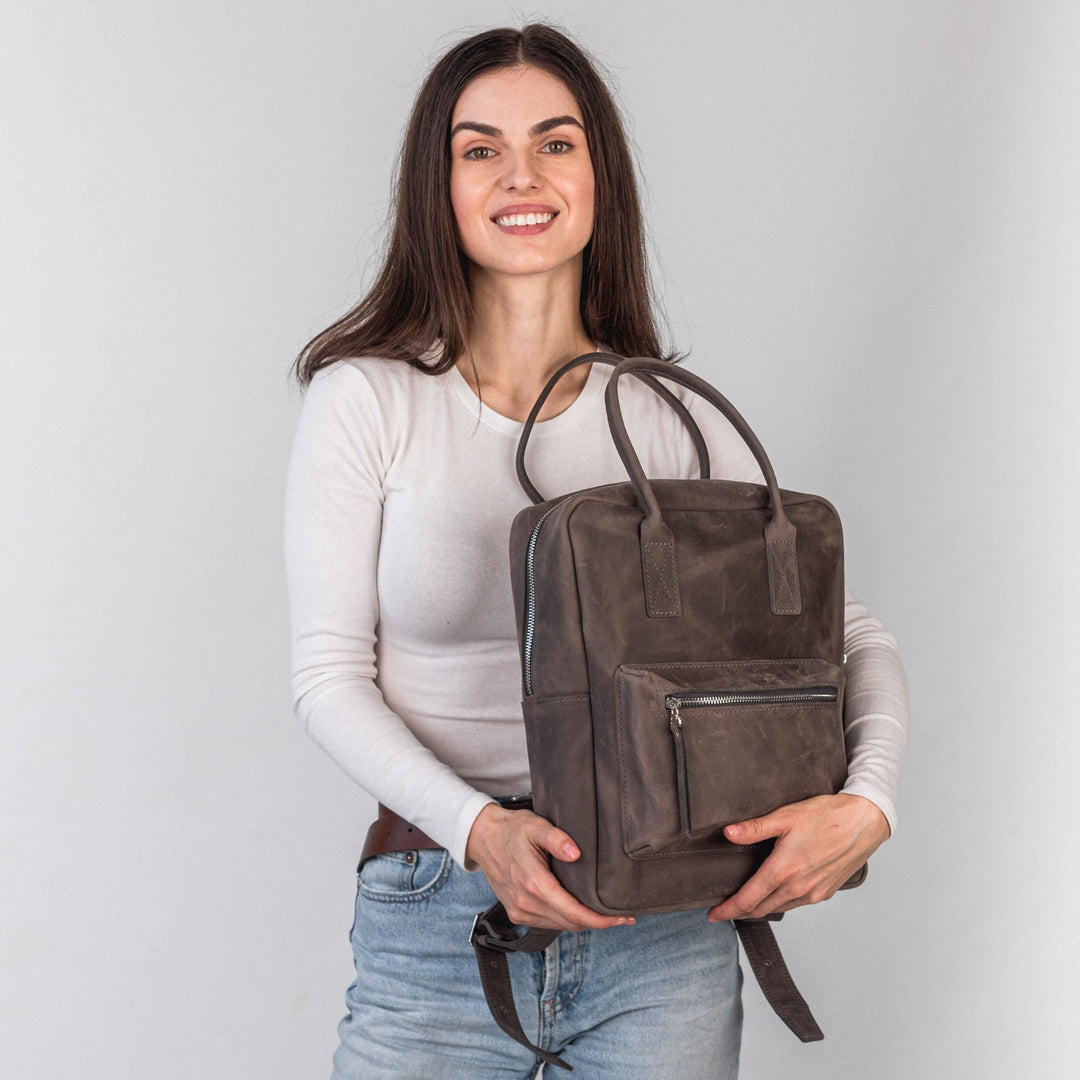 Gray leather city backpack - Leather Purse Backpack