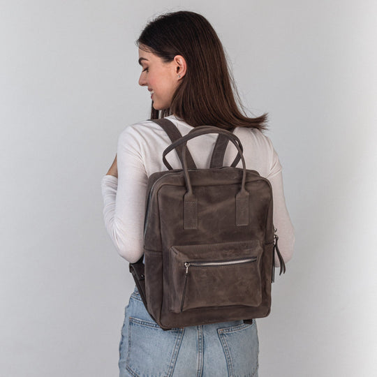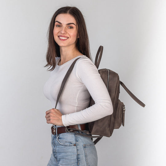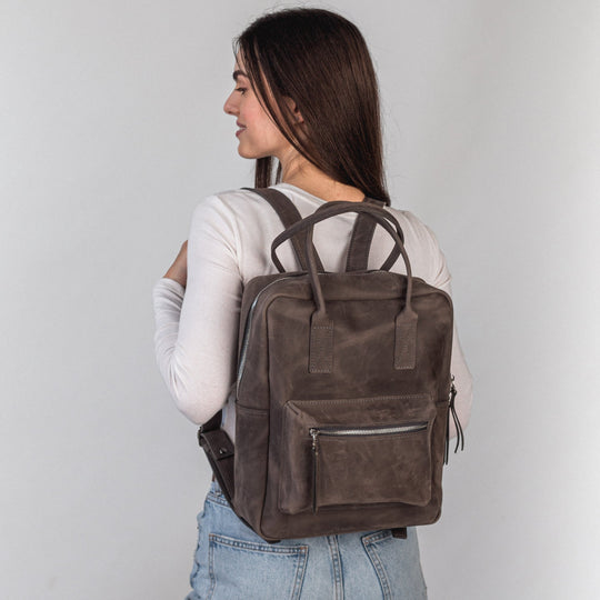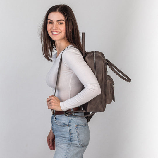 Gray leather city backpack