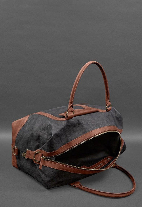 Handmade Travel Bag In Canvas and Natural Leather - Leather Purse Backpack