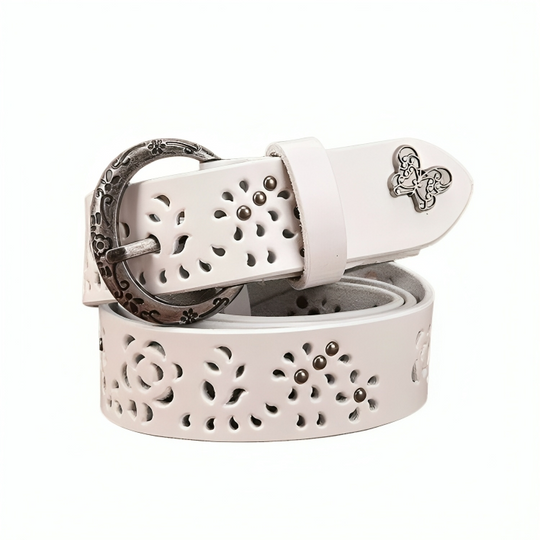 Ajoutez une touche d'élégance à votre look avec la magnifique ceinture en cuir Helzunia pour femme. Sa boucle délicate et ses motifs perforés classiques lui confèrent une grâce intemporelle, tandis que son ornement papillon lui confère une signature visuelle distinctive. À la fois fonctionnelle et décorative, elle complétera parfaitement vos tenues, des plus décontractées aux plus sophistiquées !