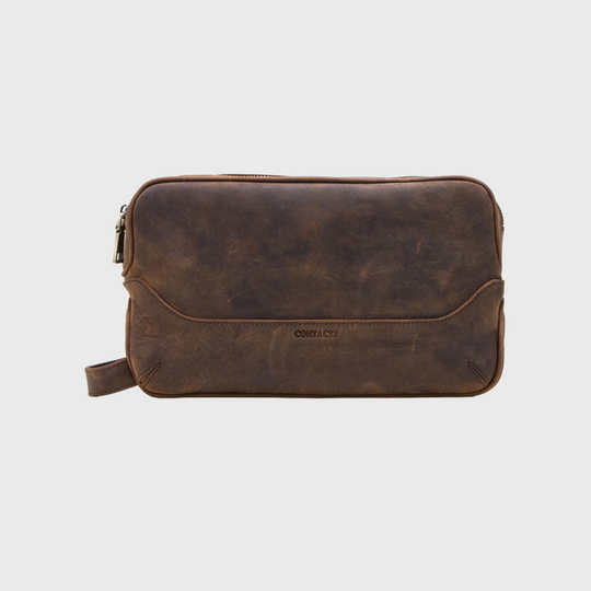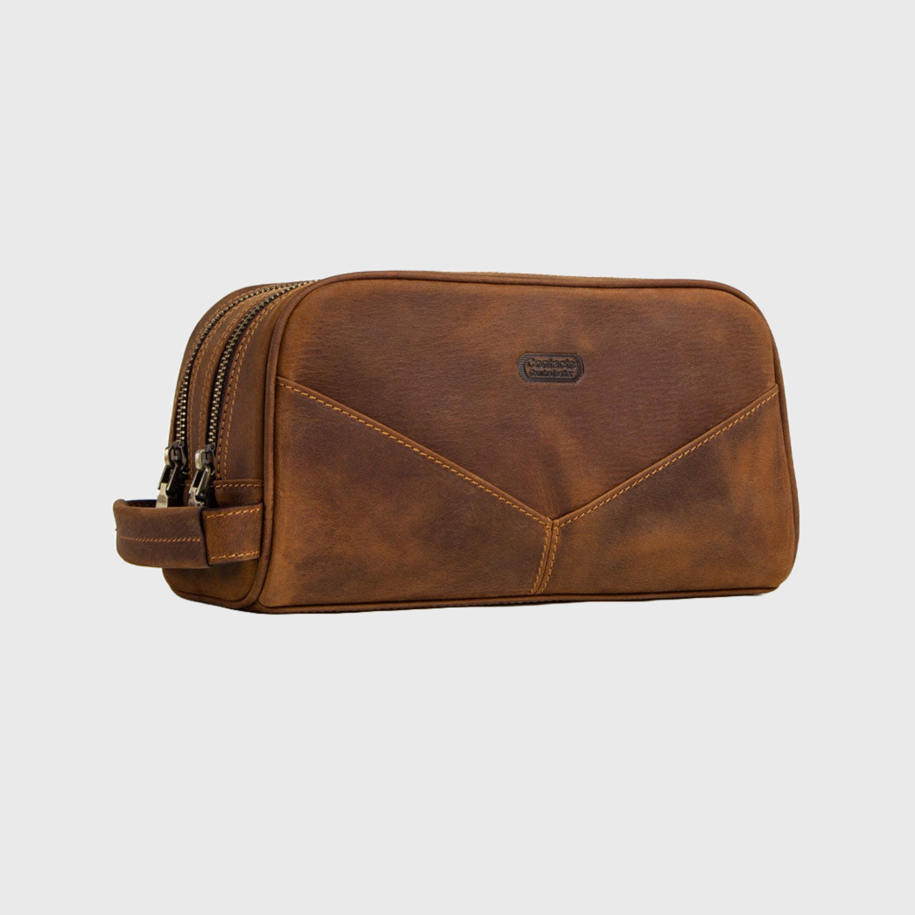 Trousse de toilette à double fermeture éclair en cuir Crazy Horse pour homme
