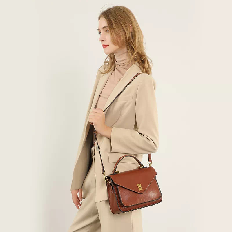 Sac cartable en cuir à poignée supérieure - Sac compact et confortable