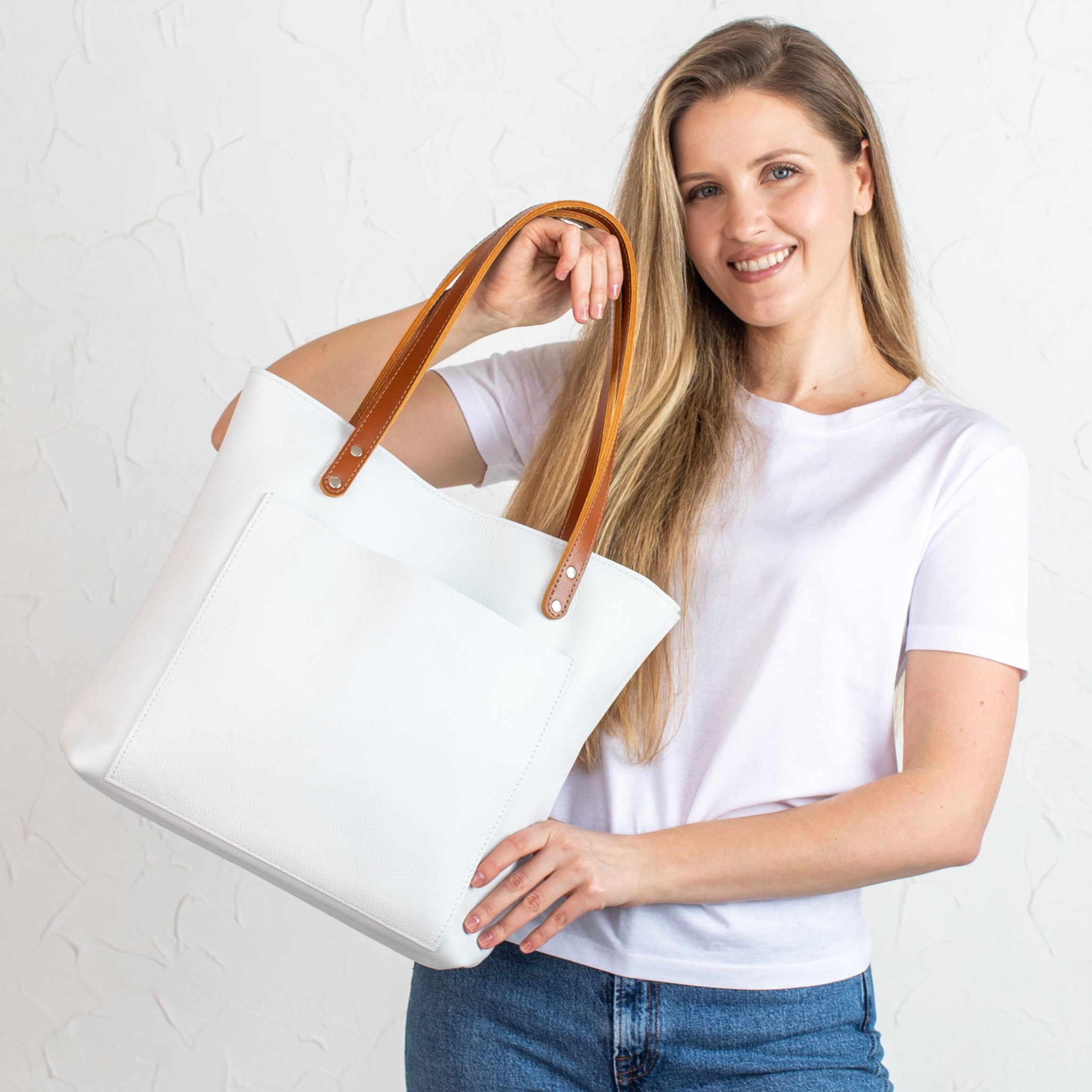 This handmade women tote bag is produced of cowhide pebbled leather. It has one pocket inside. The bag has a high-quality zipper that secures your belongings. It holds the shape perfectly and you may be confident that your personal things like cell phone, tablet, lap-top are safe. This bag is simple, reliable, and durable. Its universal look allows to use the tote bag for various purposes. One may take the bag to the work, shopping, meeting, or walk and feel comfortable with it at any conditions.