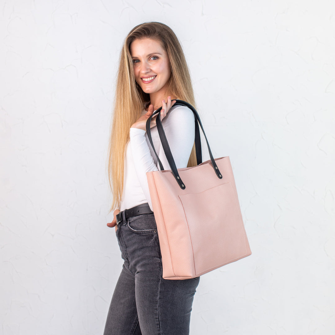 Rose pebbled leather tote bag