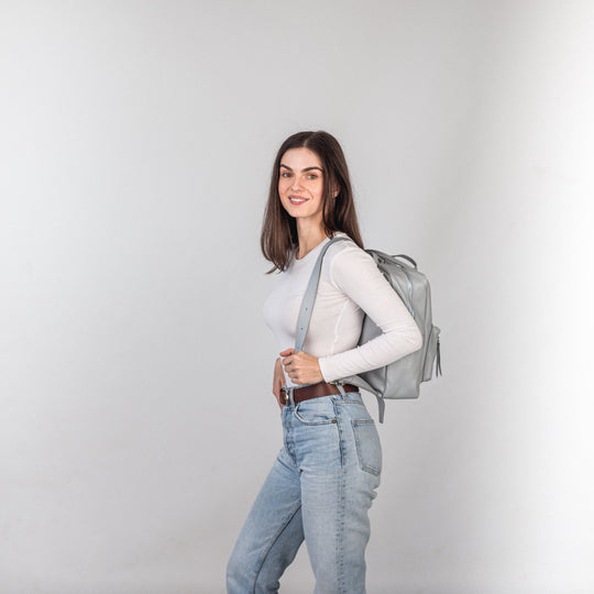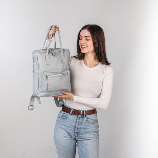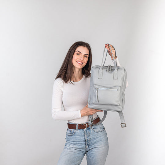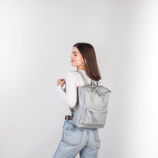 Light Gray pebbled leather city backpack - Leather Purse Backpack